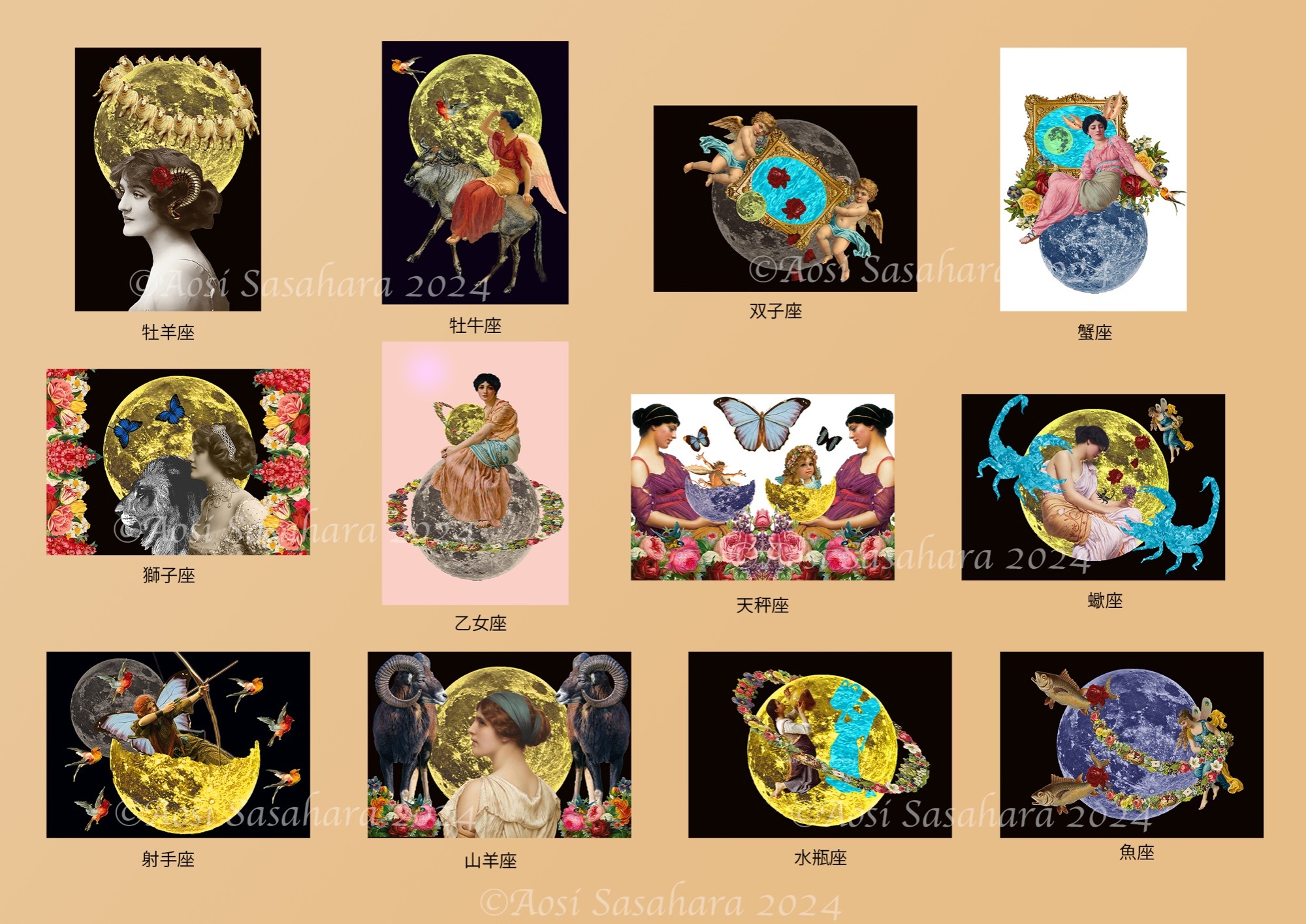 12星座のビンテージコラージュです。